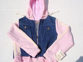 The Shampoo brand jackets are blue denim with a pink hood and sleeves. They were sold in sizes 5/6, 7/8, 10/12 and 14/16.